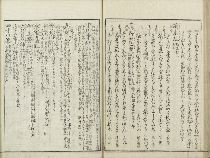画像は大和名所圖會添上郡二(p36)より中川寺の記述がある頁です。寛政3年(1791)のころ、中川寺は「なかがわでら」と発音されていたとわかります。